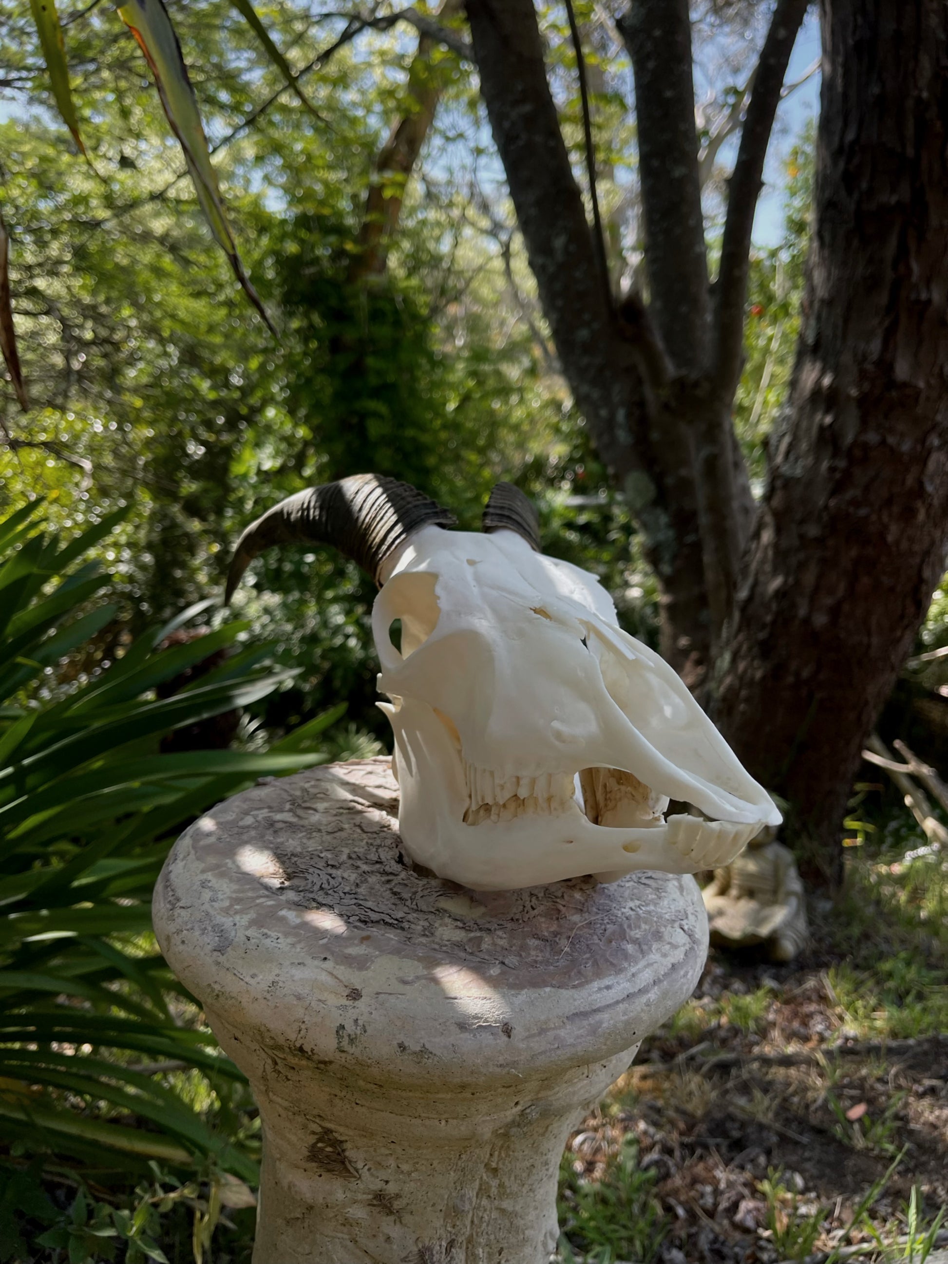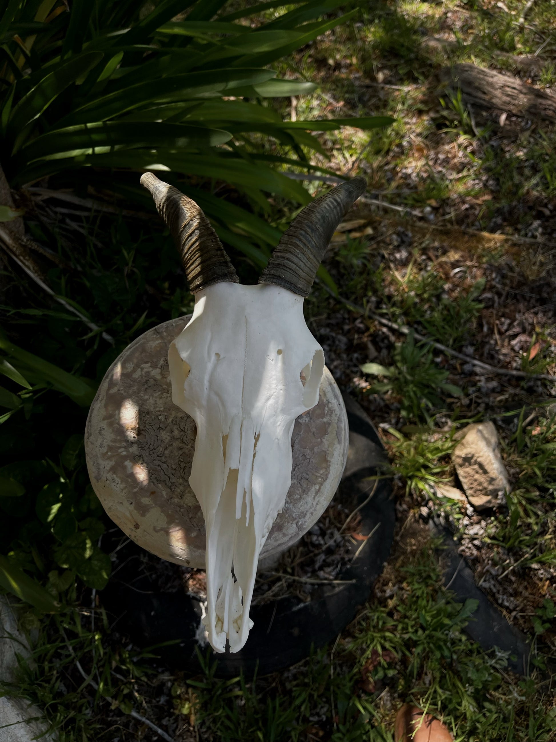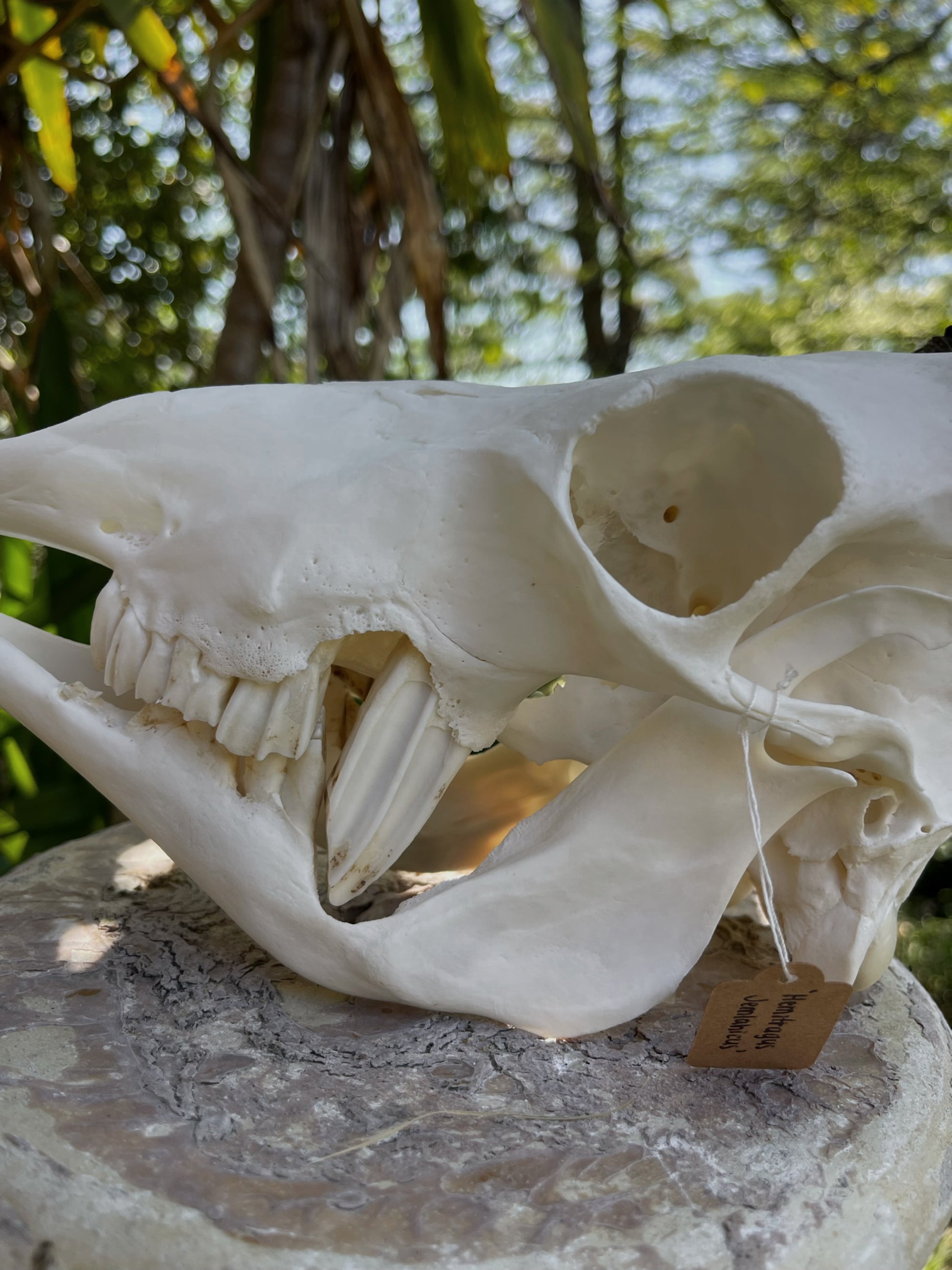 A Himalayan Tahr Nanny ‘Hemitragus jemlahicus’ skull imported from the alps of New Zealand with some GNARLY pathology - an overgrown tooth that has carved away at the lower mandible.